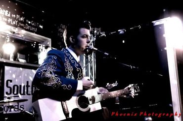 he reveres the traditions of country music as established by people like Owens, Merle Haggard, George Jones, Ernest Tubb and Hank Williams. When visiting Bakersfield, Varnell has shown a keen interest in exploring the city's rich musical history, even performing at Trout's with the great Red Simpson and visiting Simpson's home. Varnell and his harmonica-playing cousin Charlie Flowers have made many friends at the Crystal Palace, including California Highway Patrol Officer Mack Wimbish, who arranged for the boys to go on a ride-along in a Highway Patrol cruiser. "The very nice patrol officer was named Aaron Taylor... A. Taylor," Varnell said, "and we thought that was really cool because we in North Carolina can identify with sheriff Andy Taylor from the Andy Griffith Show!" Varnell and Flowers also drove around town extensively with local draftsman Joe Stormont [the author's brother], who showed them such historic sites as the old Lucky Spot honky-tonk on Edison Highway. While out that way, Varnell stopped in at the Mercado Latino and purchased a classic cowboy suit -- reminiscent of those worn by Hank Williams -- which he soon